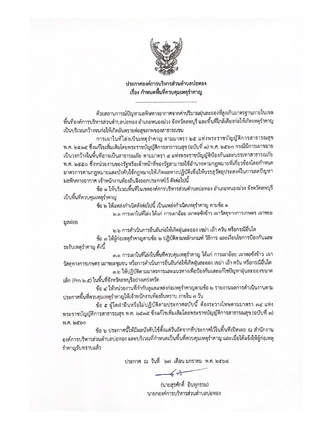 ประกาศกำหนดพื้นที่ควบคุมเหตุรำคาญ